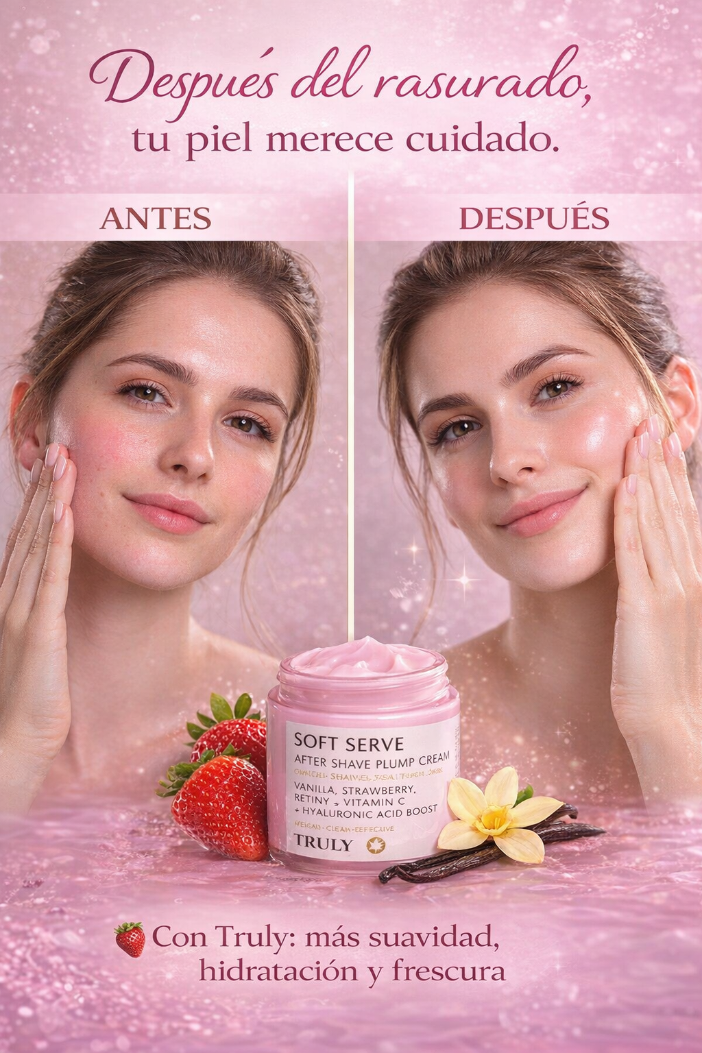Estoy OBSESIONADA 😍🍓 El Truly After Shave de Fresa deja mi piel como de porcelana. Cero irritación, full hidratación y un glow hermoso. Literal parece que me hice un facial y me llego en excelente estado.